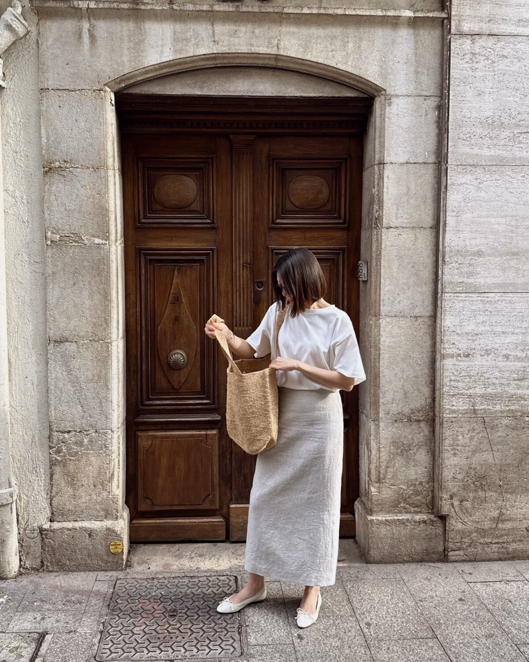 Nếu có một món đồ nào vừa có khả năng ‘sáng bừng’ outfit lại dễ phối với mọi kiểu áo, thì đó chính là chân váy trắng. Vào mùa hè, item này xuất hiện dày đặc trong các outfit công sở và khi sang thu, chân váy trắng vẫn tiếp tục giữ phong độ thời trang. Không chỉ tạo điểm nhấn dịu dàng, nữ tính, chân váy trắng còn giúp bộ trang phục trở nên trang nhã và nổi bật mà không cần quá nhiều phụ kiện cầu kỳ. Đây là sự lựa chọn lý tưởng cho những chị em muốn tạo phong cách công sở nhẹ nhàng và tinh tế.
