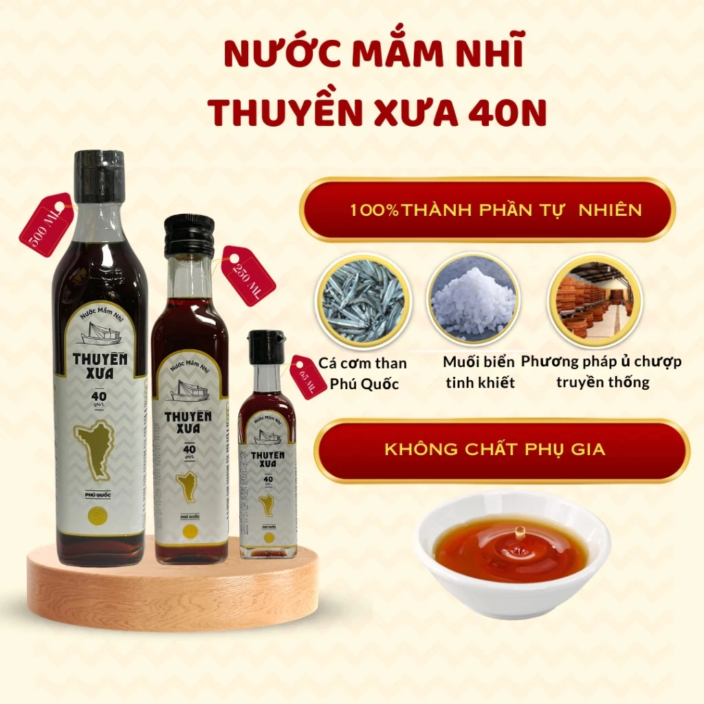 - Thành phần: Nước Mắm Nhĩ Phú Quốc Thuyền Xưa có thành phần tự nhiên hơn các sản phẩm khác