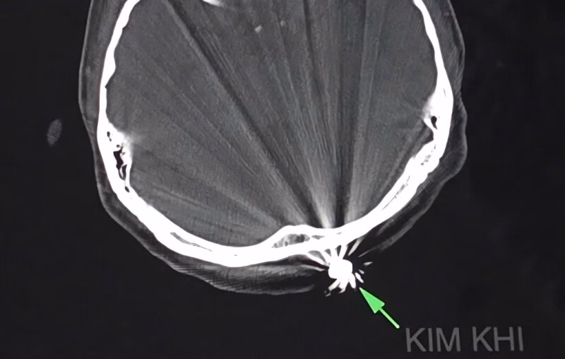 Sau khoảng 45 phút phẫu thuật, các bác sĩ đã thành công trong việc lấy ra dị vật kim khí là đầu đạn có kích thước 0,5×0,3cm. Điều令人 ngạc nhiên là viên đạn chỉ xuyên qua lớp da và chạm nhẹ vào xương chẩm, không gây ra bất kỳ tổn thương nào đến não và cấu trúc lân cận.