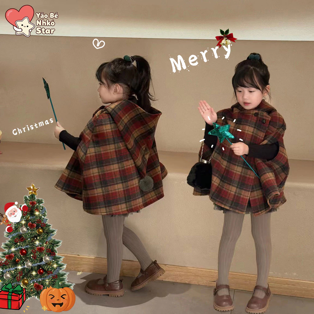 🔥 Áo Choàng Dạ Bé Gái Họa Tiết Caro Cổ Điển – Phong Cách Halloween & Giáng Sinh Ấm Áp Vừa Phải Cho Bé 3-8 Tuổi đang giảm giá!
