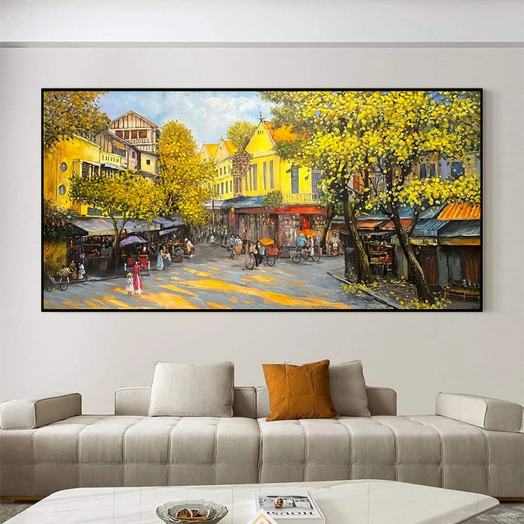 🔥 Tranh canvas treo tường phong cảnh phố cổ Hà Nội khổ ngang 120 x 60 cm đang giảm giá!