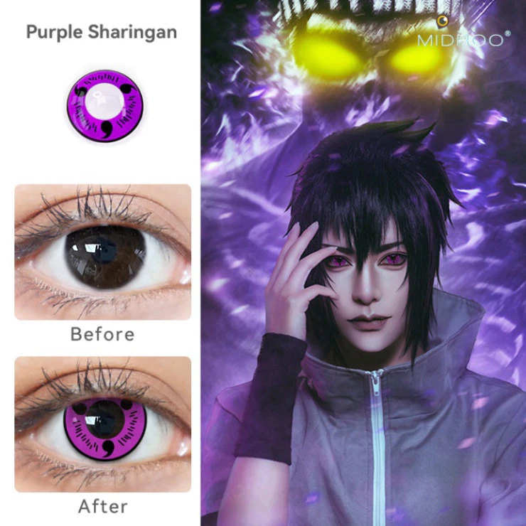 - Kính áp tròng Sasuke Sharingan có độ: Loại kính áp tròng này có thiết kế giống như đôi mắt Sharingan của Sasuke và có độ phóng đại khác nhau.