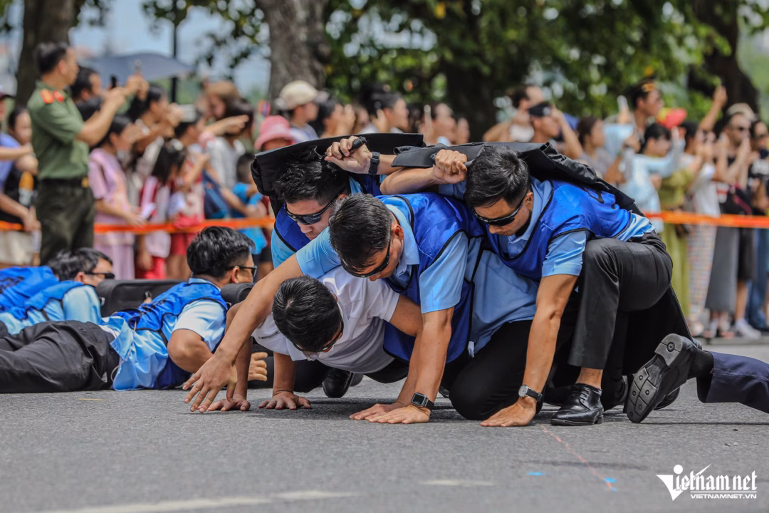 Một trong những màn trình diễn nghiệp vụ đặc sắc là tình huống bảo vệ yếu nhân và kỹ thuật sử dụng dây chiến thuật xử lý tình huống nghiệp vụ.